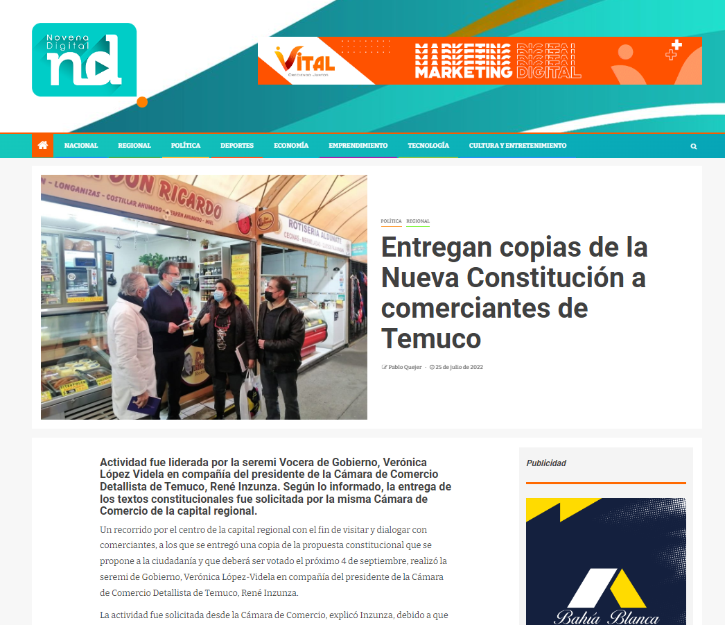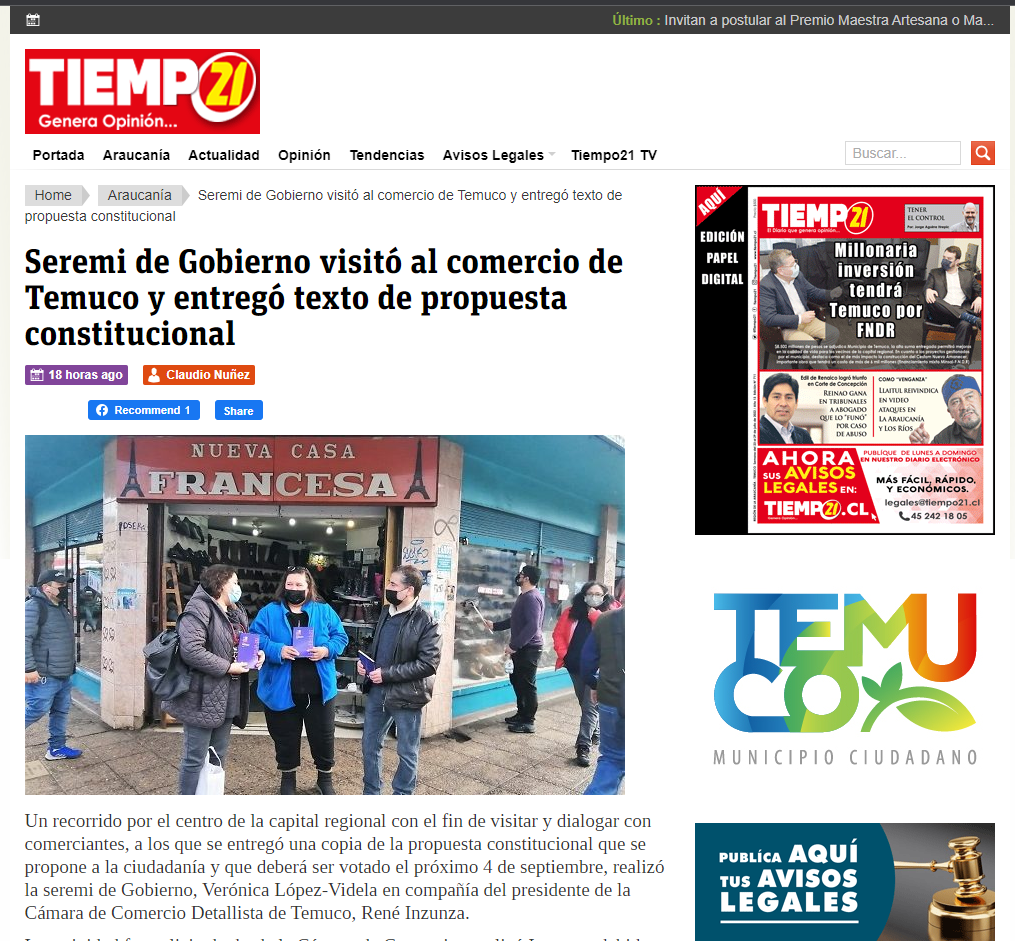 La prensa regional ha difundido profusamente las actividades en las que participa la Cámara de Comercio Detallista de Temuco, lo que valoramos y agradecemos. Se han estado realizado seminarios de capacitación, ayudas sociales, apoyos a los socios, e iniciativas que tienen que ver con la educación cívica. De verdad, muchas gracias y saludos afectuosos para todos.