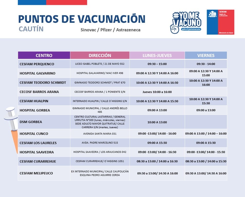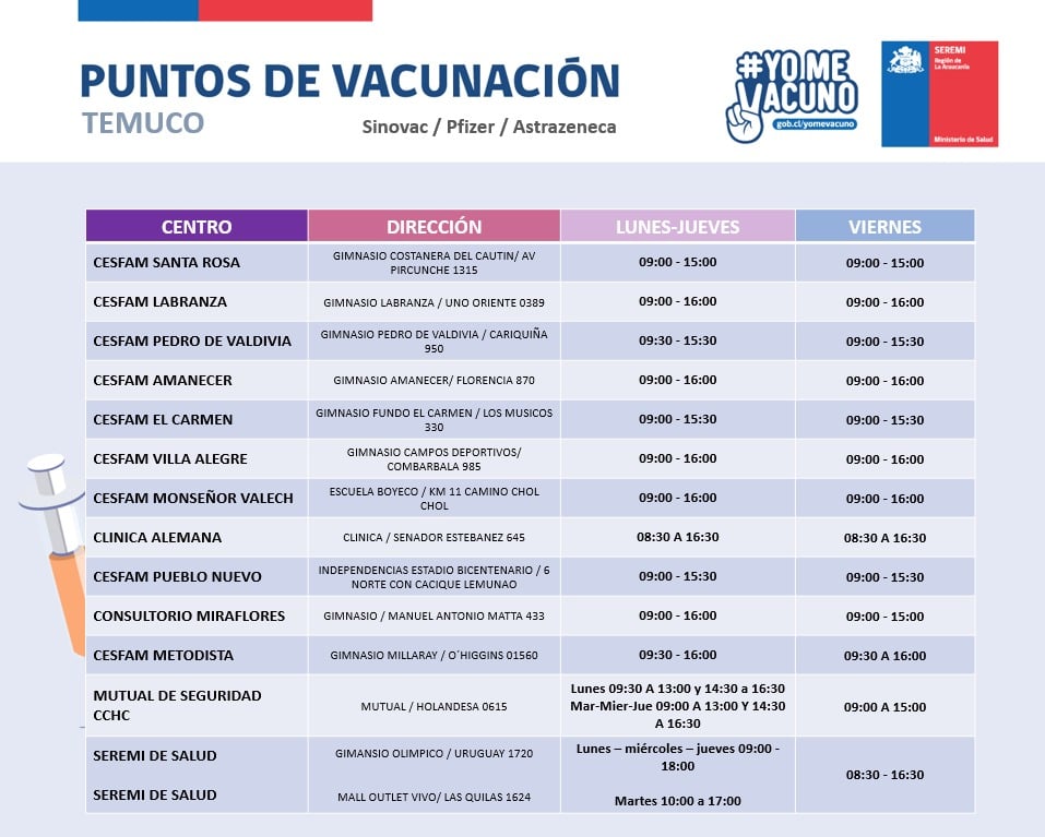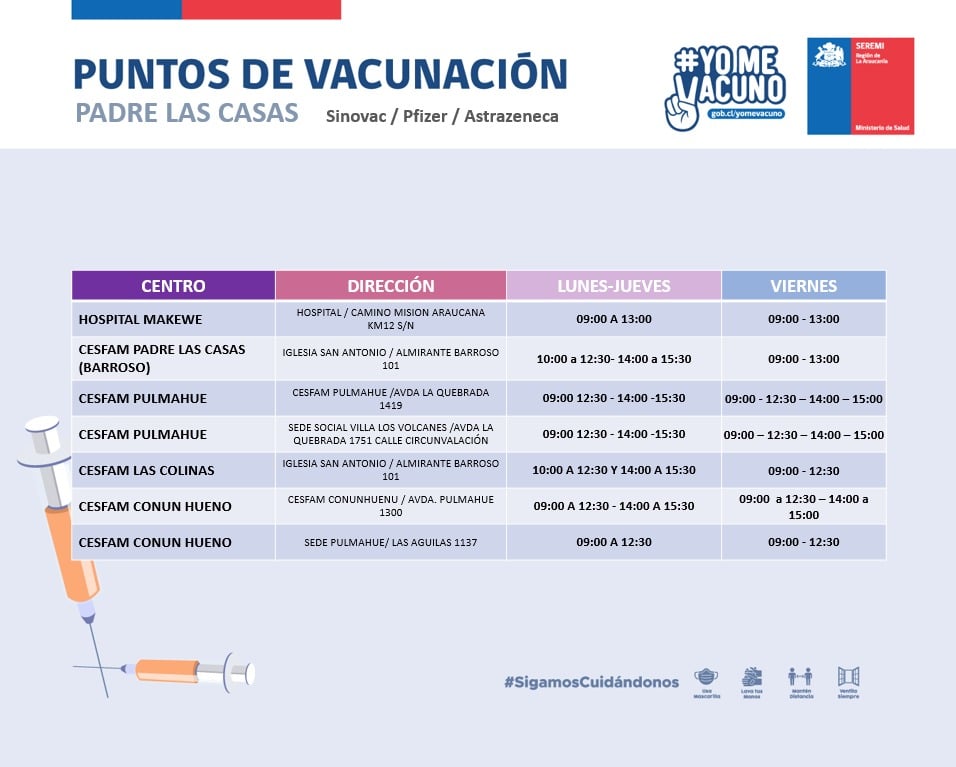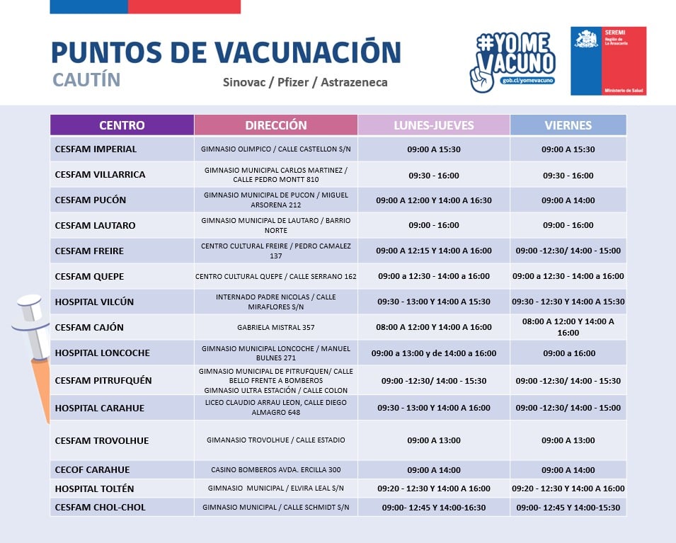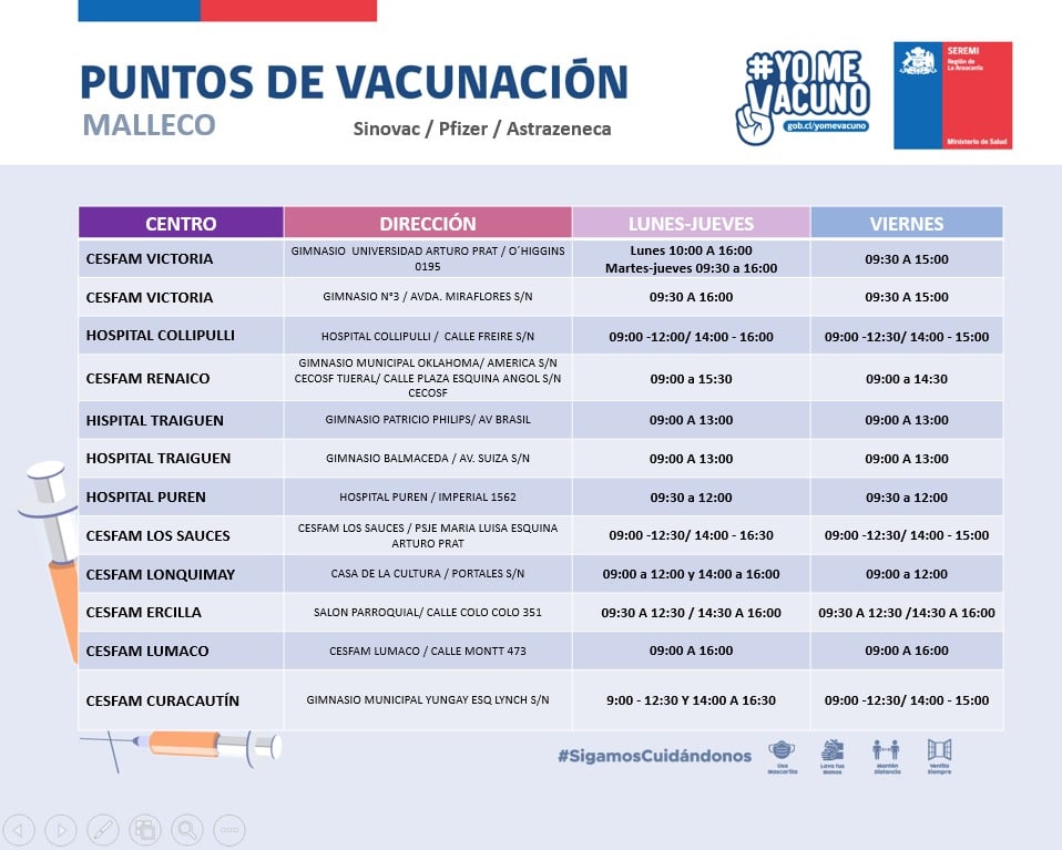 Estimados Socios, compartimos con ustedes los distintos puntos de vacunación, presentes en nuestra región.