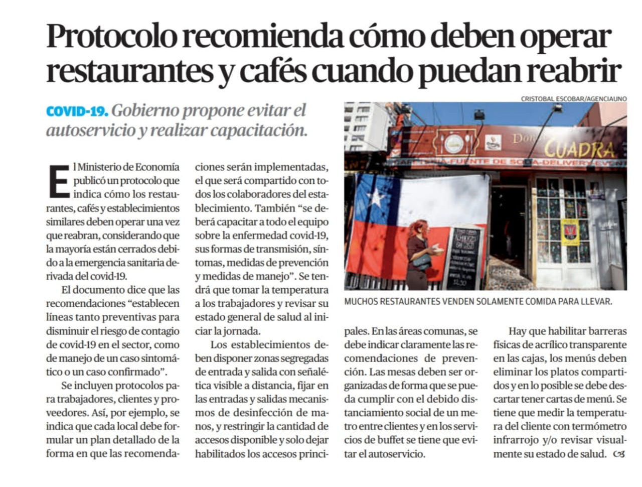 Comienza a implementarse en fase de inicio el protocolo de re apertura de Restaurantes y comercios afines.